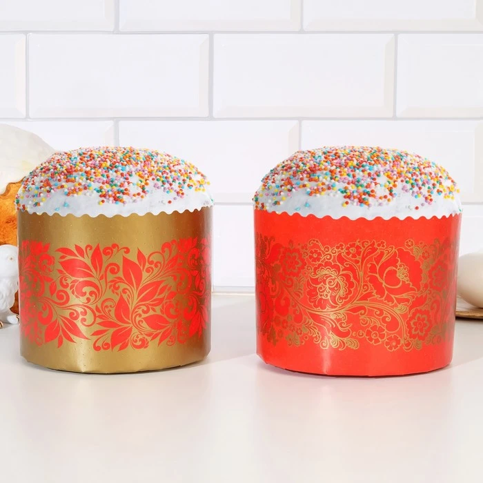 Описание: Представляют собой одноразовые формы из специальной бумаги с рисунком для выпечки и последующего хранения куличей.