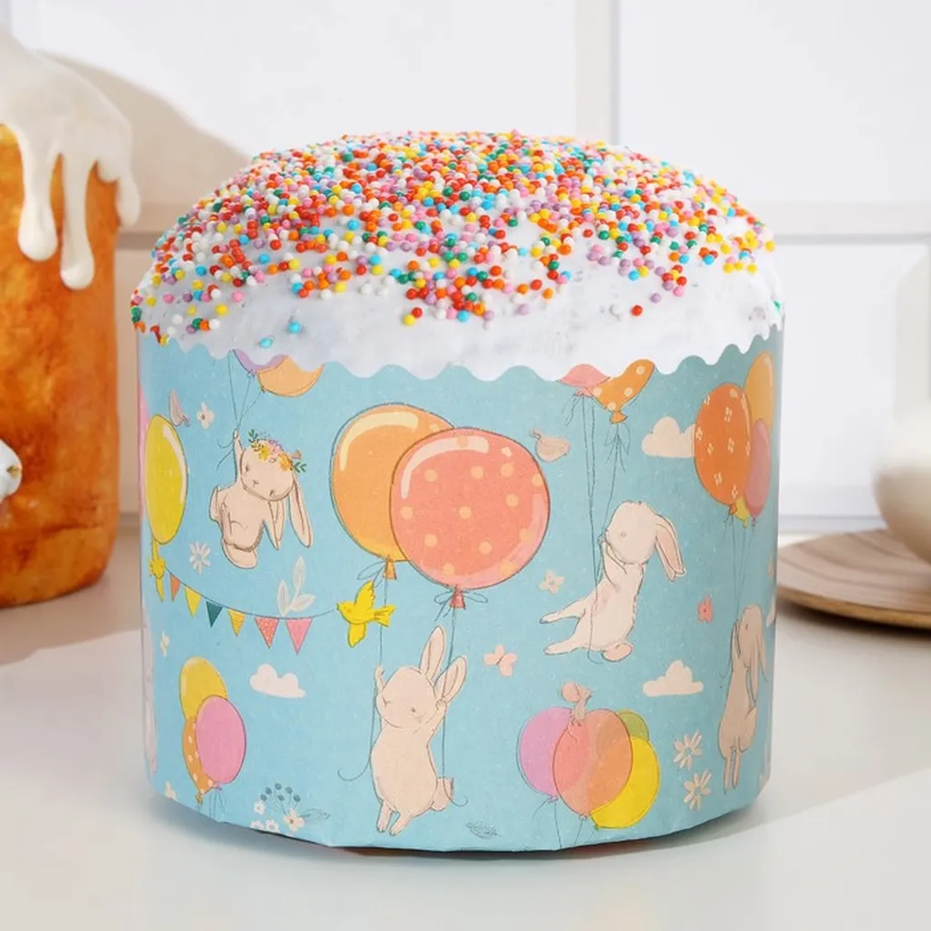 Описание: Представляют собой одноразовые формы из специальной бумаги с рисунком для выпечки и последующего хранения куличей.