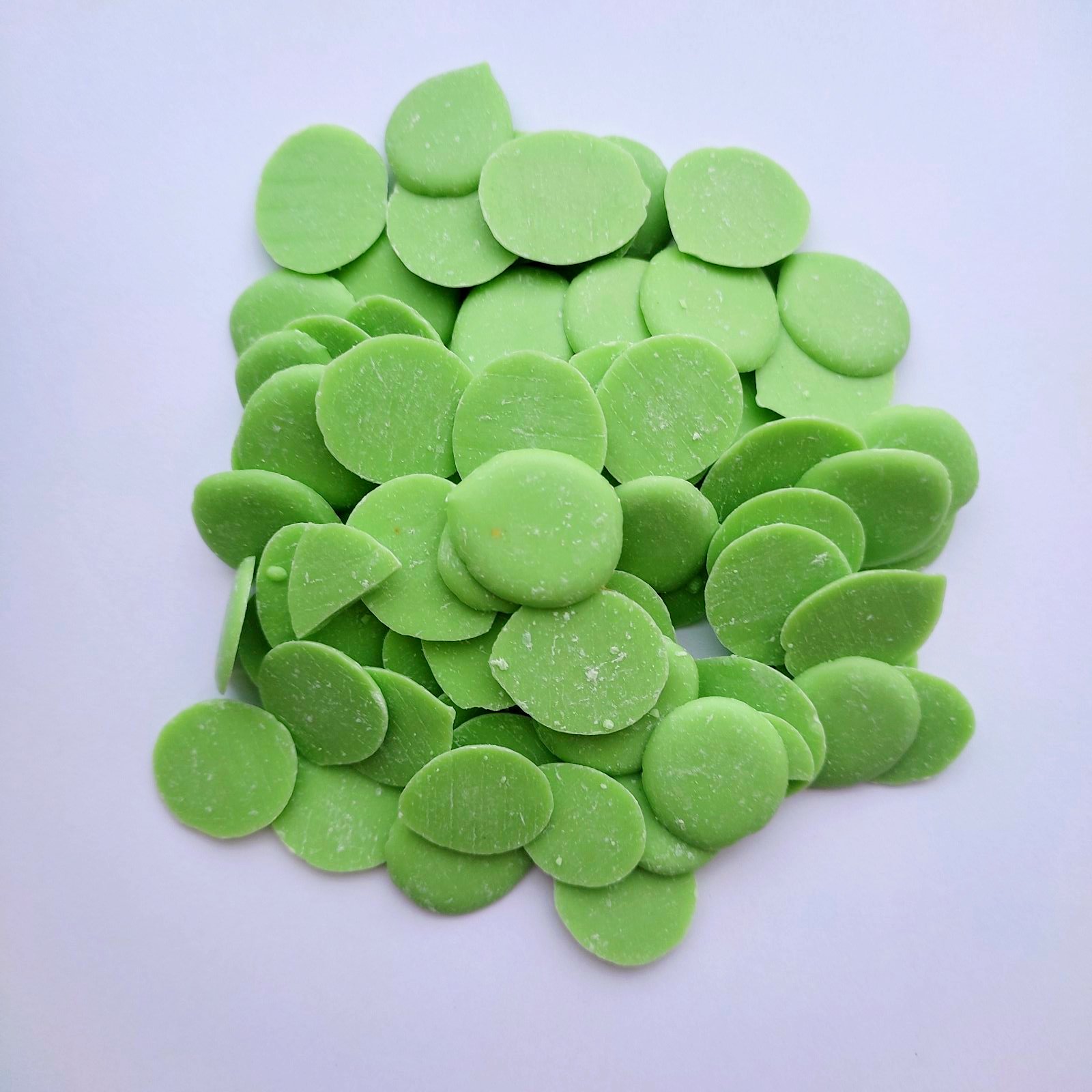 Цветная кондитерская глазурь Шокомилк на лауриновых жирах в дисках (монетах) диаметром 2-2,5 см, со вкусом и ароматом яблока (цвет зеленый) используется для глазирования печенья, вафель, тортов, рулетов, зефира, конфет и прочих кондитерских изделий. Также используется для приготовления шоколадных фигурок, плиточного шоколада, ганаша, начинки для конфет. Глазурь не требует темперирования, быстро плавится на водяной бане или в микроволновке короткими импульсами.