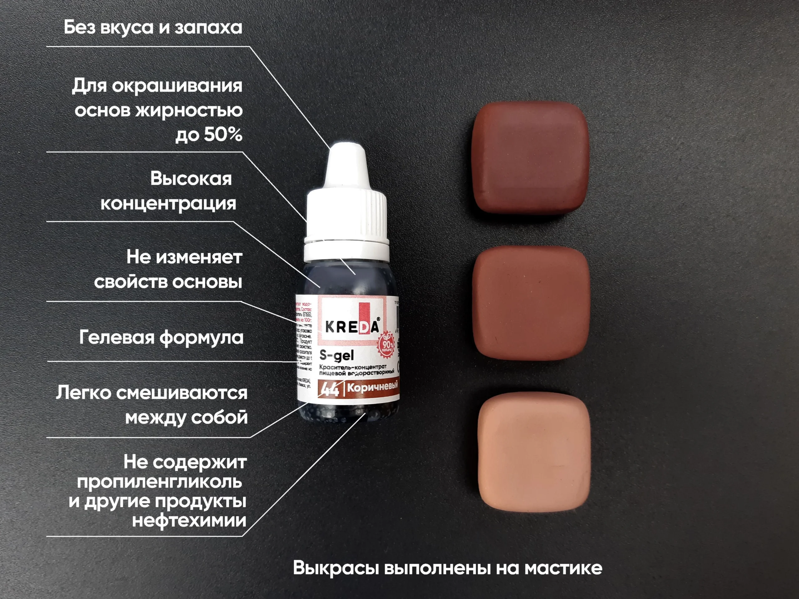Состав: Вода, сироп глюкозный, пищевые красители Е155 (в составе комплексных пищевых добавок S-gel 44 согласно сертификату EU Declaration of Conformity), антиокислитель (лимонная кислота).