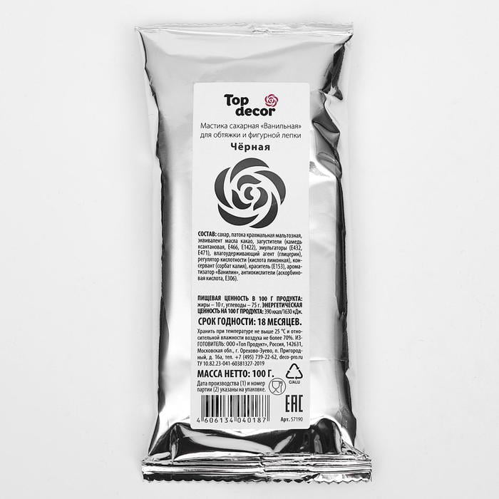 Сахарная мастика с тонким ароматом ванили — уникальный кондитерский полуфабрикат для декорирования изделий. Создана на основе эквивалента какао-масла, благодаря чему является универсальной массой для обтяжки тортов, фигурной лепки, а также для создания тонких элементов декора. Мастика легко окрашивается любыми пищевыми красителями, для создания перламутрового эффекта рекомендуется использовать сухой блестящий краситель. Ассортиментная линейка мастики представлена самыми актуальными оттенками, которые идеально смешиваются друг с другом, расширяя цветовую палитру для вашего творчества. Продаётся в фольгированных пакетах по 100 грамм.