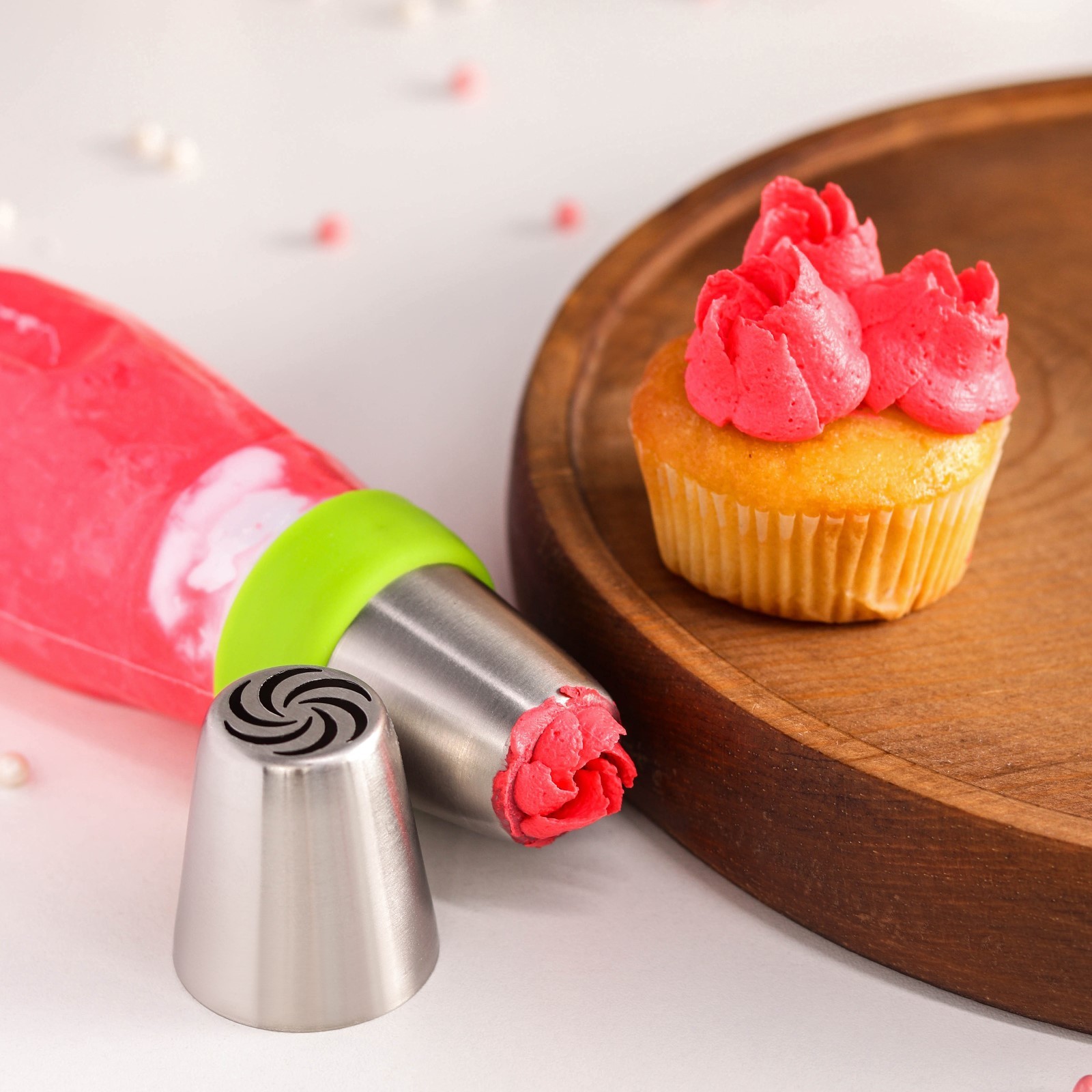 Насадка предназначена для нанесения на выпечку необычных украшений из крема. Пользоваться изделием просто: достаточно присоединить его к универсальному кондитерскому мешку.