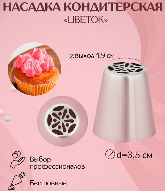 Насадка предназначена для нанесения на выпечку необычных украшений из крема. Пользоваться изделием просто: достаточно присоединить его к универсальному кондитерскому мешку.