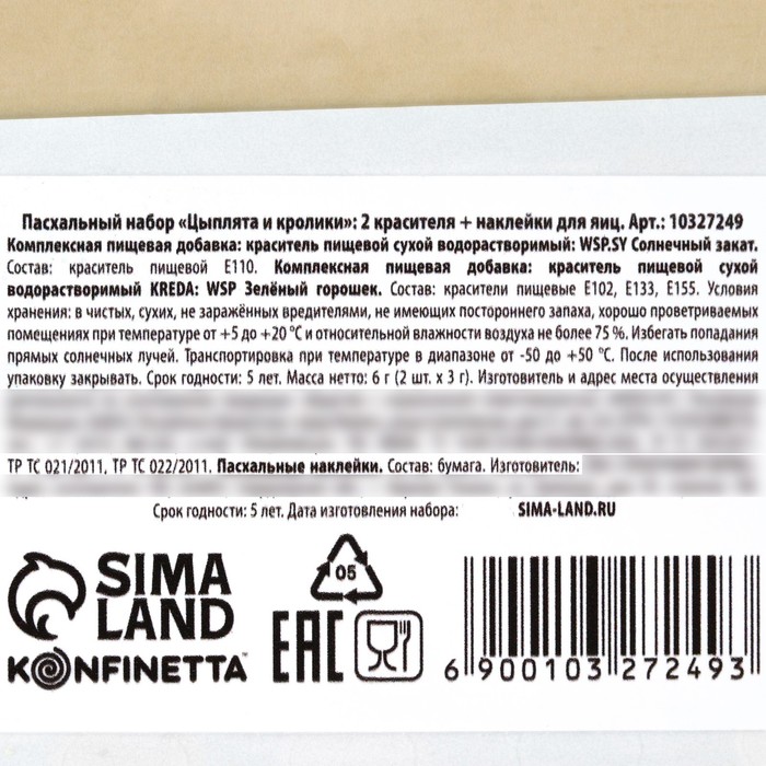 Состав: красители пищевые Е102, E133, Е155.
